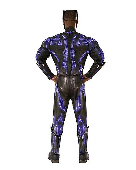 A mantle passed from warrior to warrior, the Black Panther has been a protector of Wakanda for generations. Now you can possess the strength of the Black Panther with this officially licensed Black Panther costume. This costume includes a replica of T’Challa’s purple and black vibranium suit with added muscles and foam cuffs. Add the foam shoe covers and the notorious Black Panther mask to complete this costume that is undeniably fit for a king. Wakanda forever!