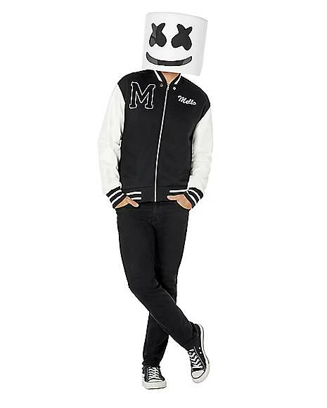 This officially licensed Adult Marshmello Jacket is the missing piece to your Halloween costume. Everyone will want to go as Marshmello. This black and white jacket has a white M on the front, and Marshmello’s logo on the back and sleeves.