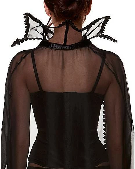 No vampire is complete without a trusty cape! This sheer vape features a wire collar that bends into whichever position you choose! Tie neck closure for the perfect fit and comfort all day long!