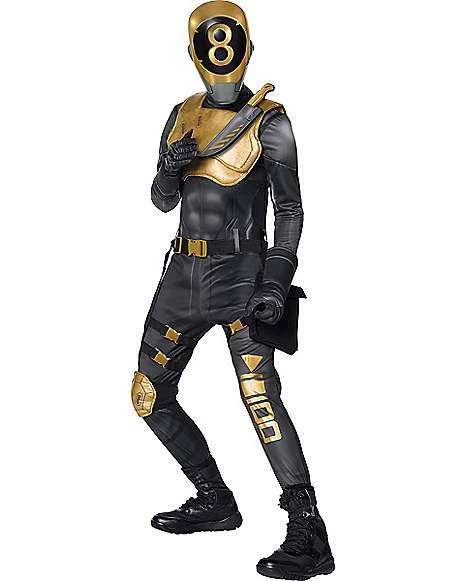 Take your 8-Ball Outfit to the next level this Halloween once you suit up in this officially licensed Fortnite 8-Ball (Gold) Costume. This golden 8-Ball Outfit will have you looking ready for any battle this Halloween. Featuring an awesome 8-Ball jumpsuit, chest armor, and a gold 8-Ball mask to start off your look, once you add the included accessories you’ll be ready to stop anyone who rivals your squad this Halloween.