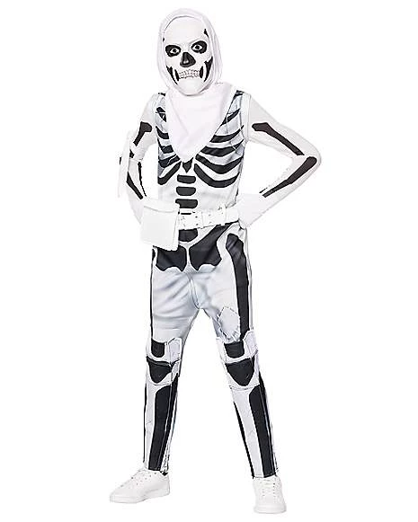 You’ll look bad to the bone in this officially licensed Youth Skull Trooper (Inverted) Costume. Featuring the signature white jumpsuit with black bones, a half mask with an attached hood, a belt, a bandana, shin guards, and gloves, you’ll have everything you need to bring your favorite Fortnite character to life this Halloween!